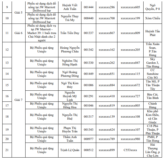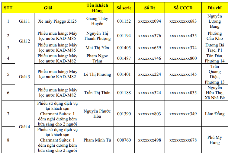 Và dưới đây là danh sách khách hàng nhận được những phần quà giá trị của chương trình ĐỢT 1 từ 22/08 – 06/09/2025: